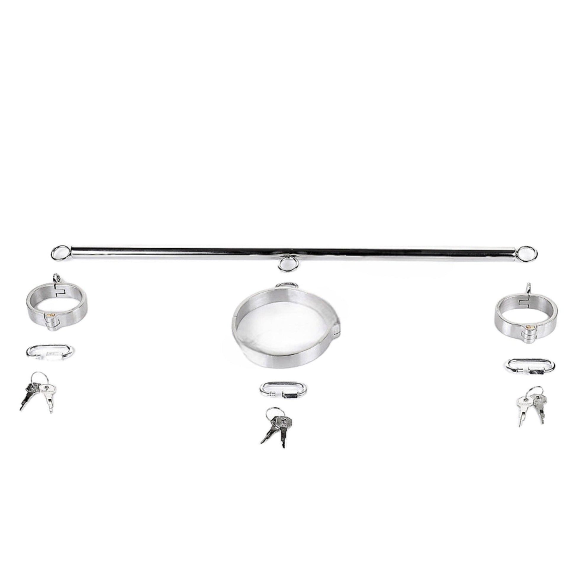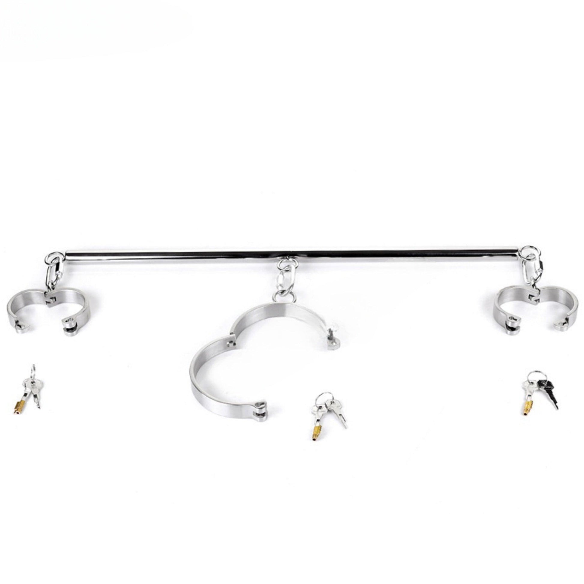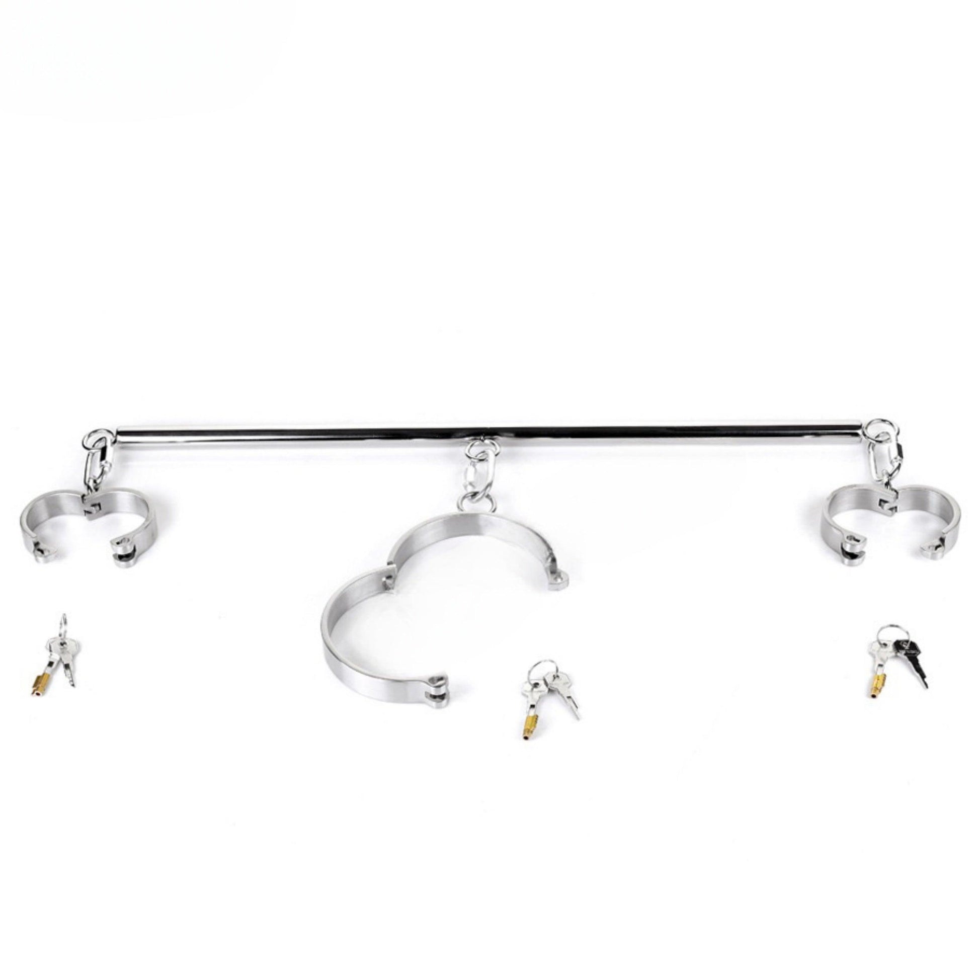 মহিলাকলার অভ্যন্তরীণ ব্যাস ১১.৭সেমি/হ্যান্ডকাফস অভ্যন্তরীণ ব্যাস ৫.৭*৪.৭/মোট দৈর্ঘ্য ৫৮সেমি/ওজন: ৯০০গ্রাম