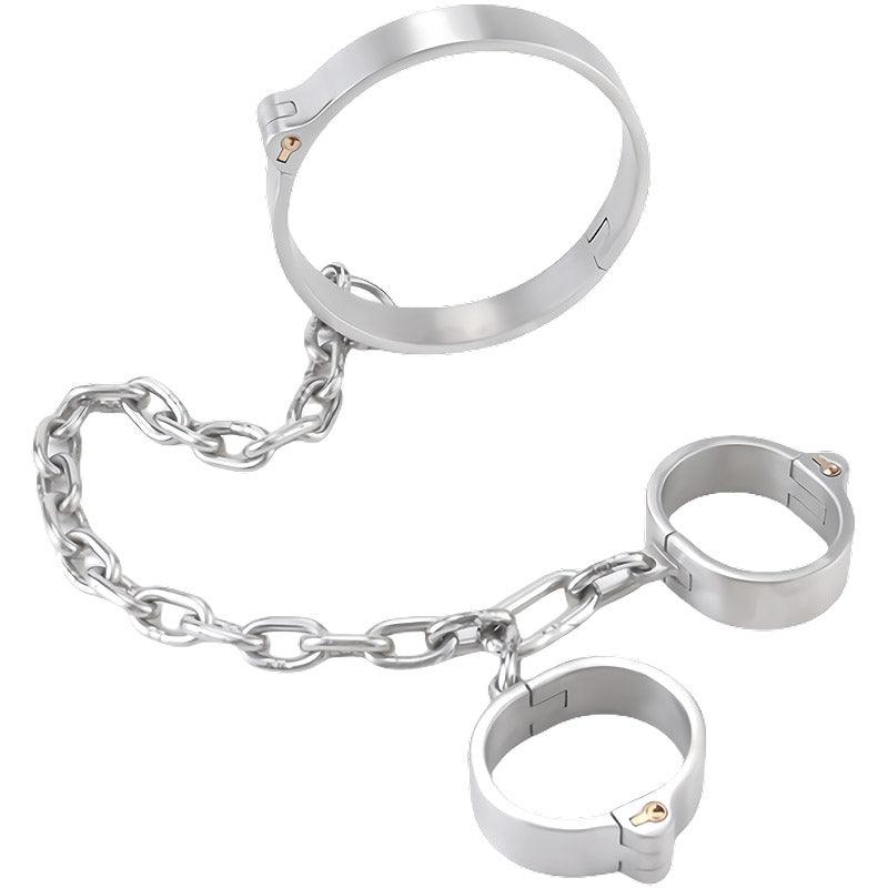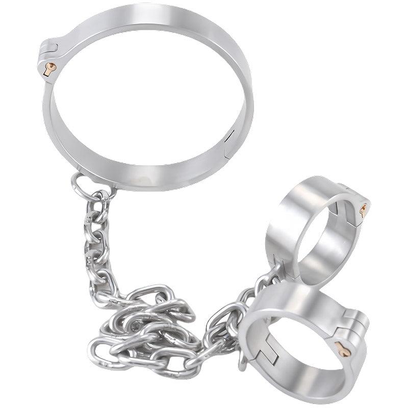 পুরুষদের হাতকড়া উচ্চতা ২.২ সেমি, পুরুত্ব ০.৫ সেমি, অভ্যন্তরীণ ব্যাস ৬৫*৫৩ মিমি, কলার উচ্চতা ২.২ সেমি, পুরুত্ব ০.৫ সেমি, অভ্যন্তরীণ ব্যাস ১৩৫ মিমি, কলার থেকে হাতকড়ার চেইন প্রায় ৪৪ সেমি লম্বা, হাতকড়ার চেইন প্রায় ৫ সেমি লম্বা।