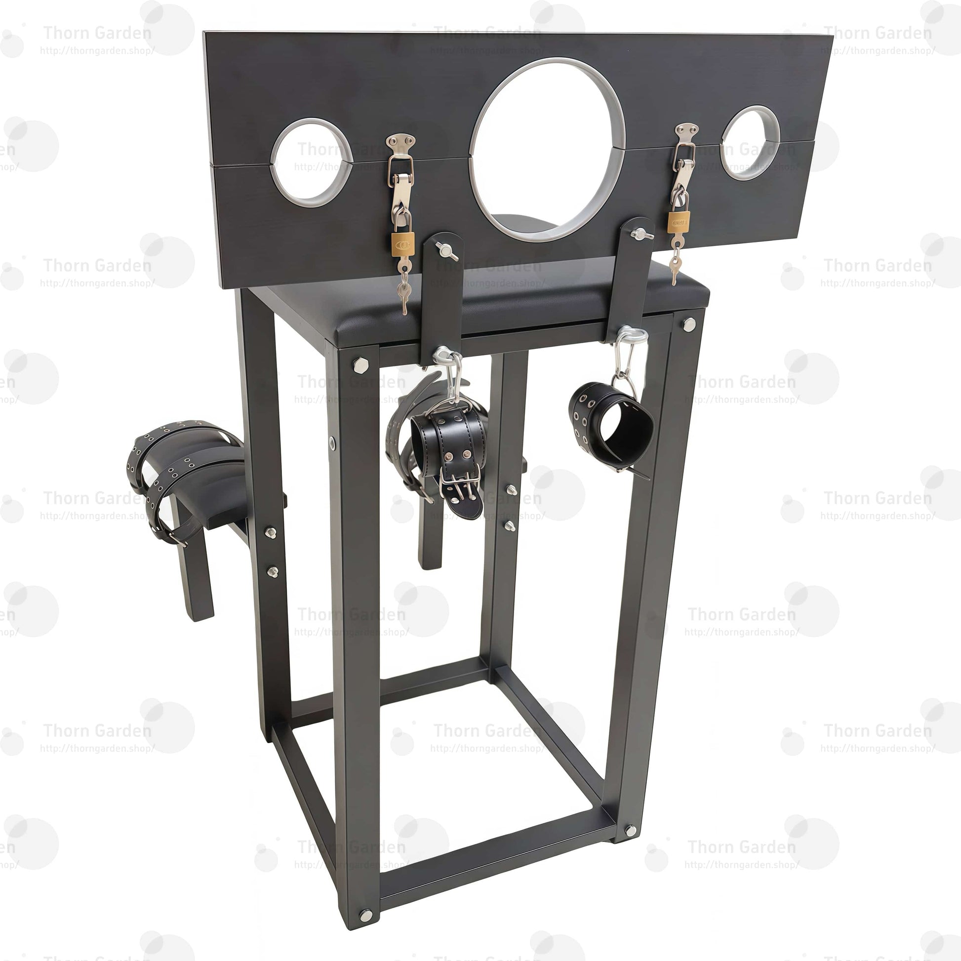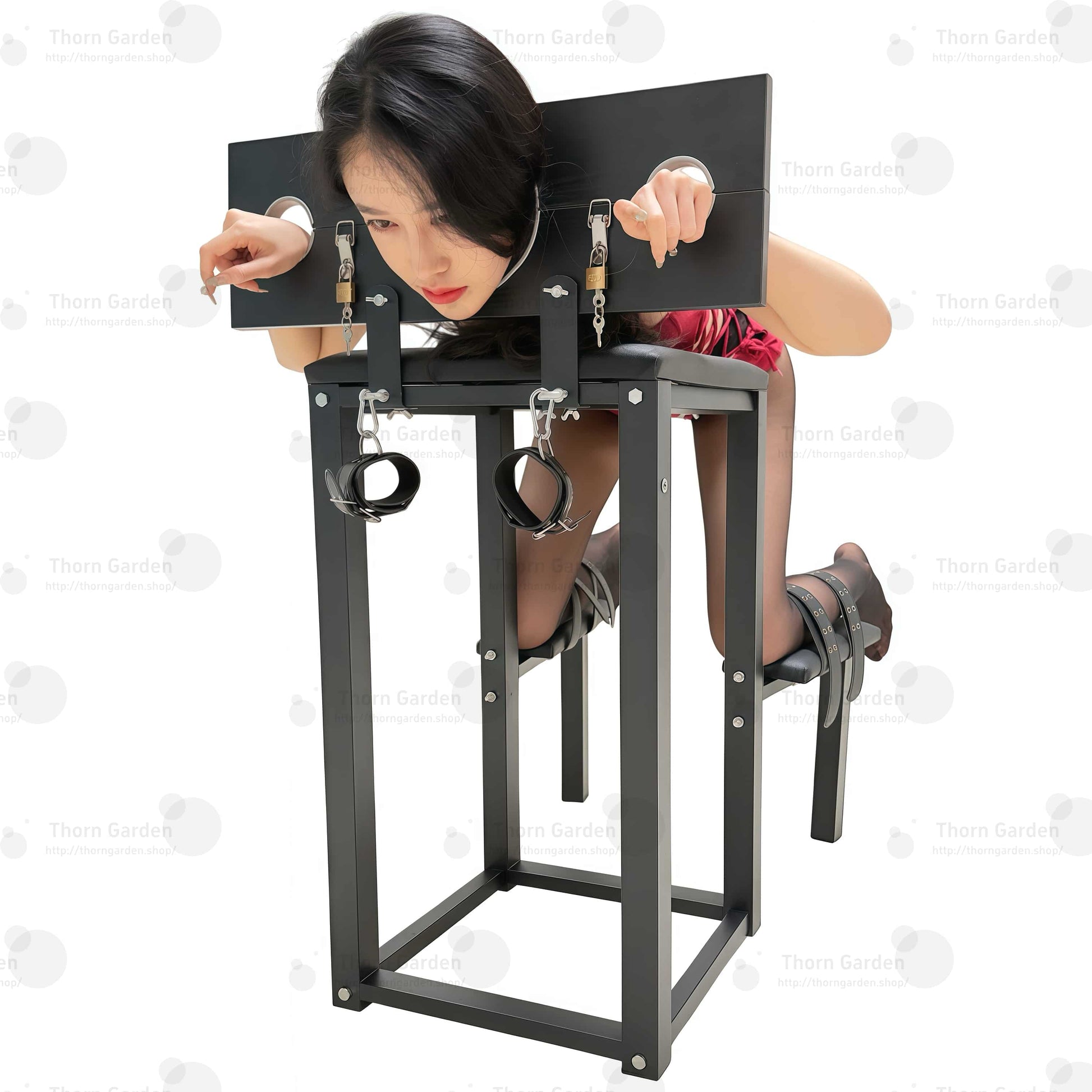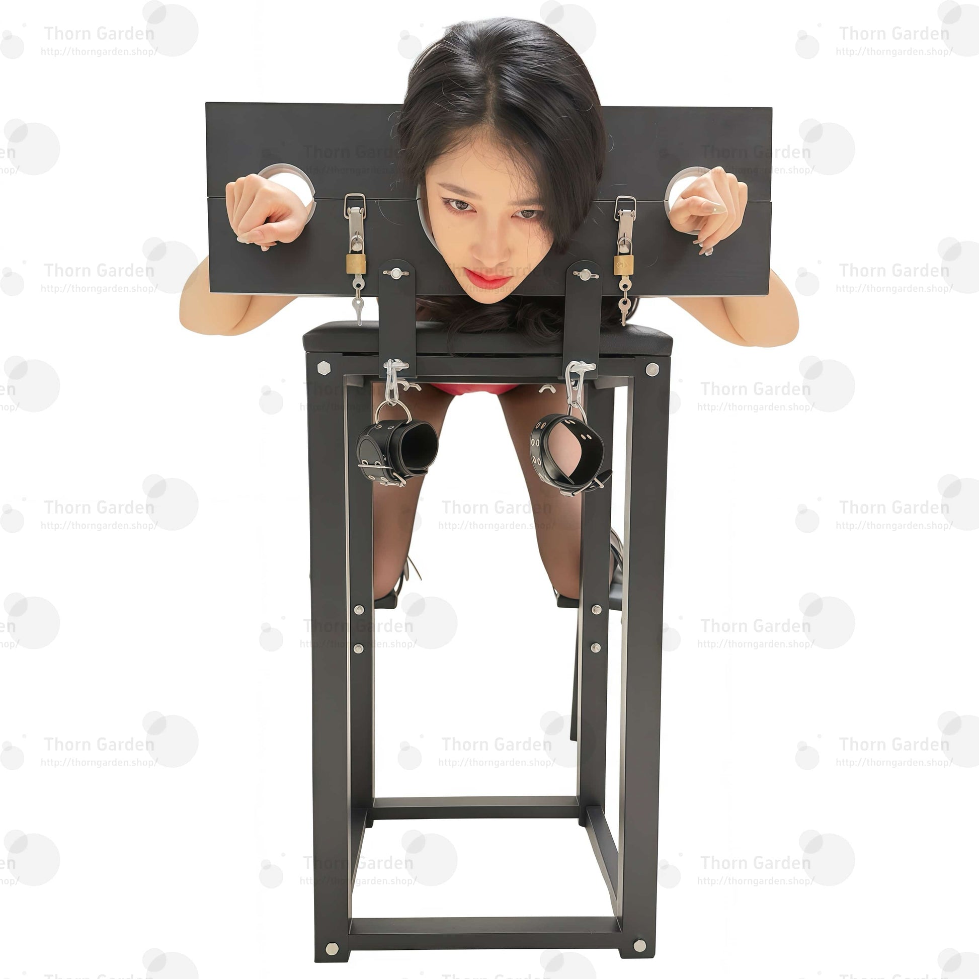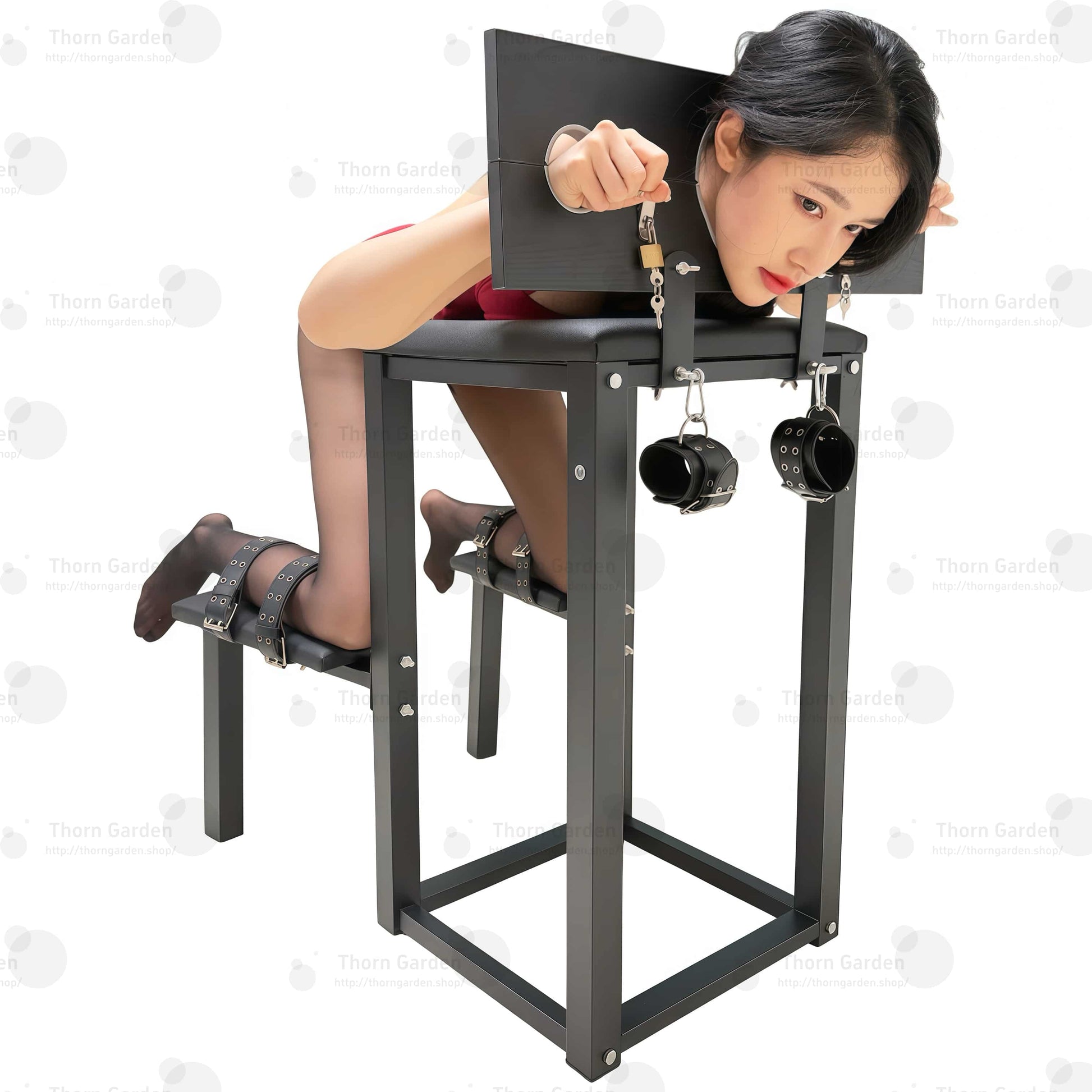 THORN GARDEN घुटने टेकने वाली बंधन कुर्सी के साथ BDSM अन्वेषण का सर्वोत्तम अनुभव प्राप्त करें, जो आपकी संवेदी अनुभवों और अंतरंगता को बढ़ाने के लिए डिज़ाइन की गई है। यह मजबूत कुर्सी सुरक्षा और स्थिरता को ध्यान में रखकर बनाई गई है, जो आपको और आपके साथी को सुख और समर्पण की नई ऊंचाइयों को खोजने के लिए एक सुरक्षित वातावरण सुनिश्चित करती है।