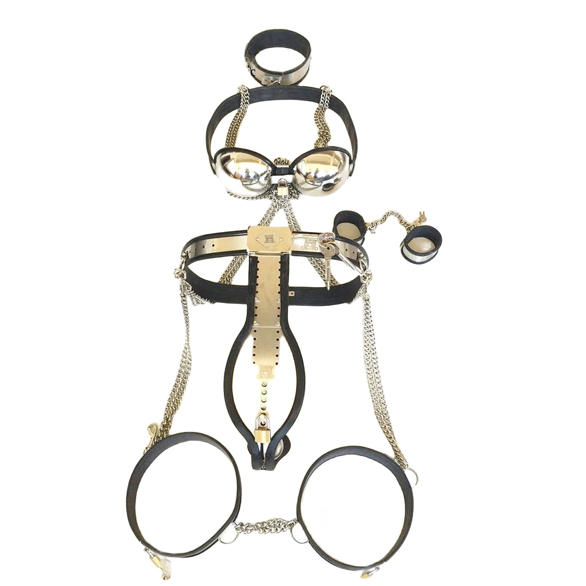 Perdalam pengalaman BDSM Anda dengan perangkat Chastity Bodysuit Pria premium kami yang dilengkapi dengan borgol terpasang. Pakaian ini menutupi tubuh bagian atas, mengamankan area selangkangan dan lengan untuk permainan ikatan dan kontrol yang lebih intens. Fitur-fitur penting termasuk: