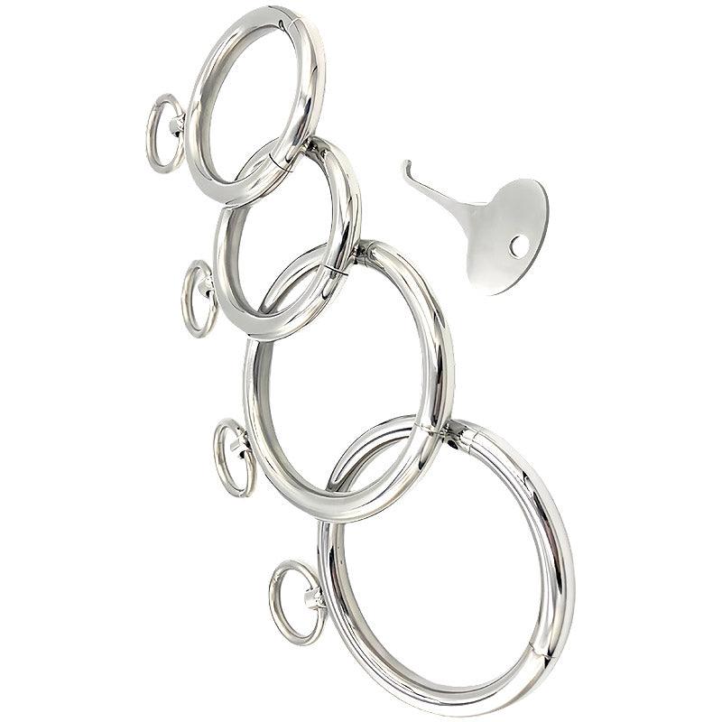 Indre diameter av kvinnelig armbånd 5,3CM, ringtykkelse 8mm, vekt 50g, indre diameter av ankelkjede 7,3CM, ringtykkelse 10mm, vekt 150g, indre diameter av halsbånd 11,8CM, ringtykkelse 10mm, vekt 250g.