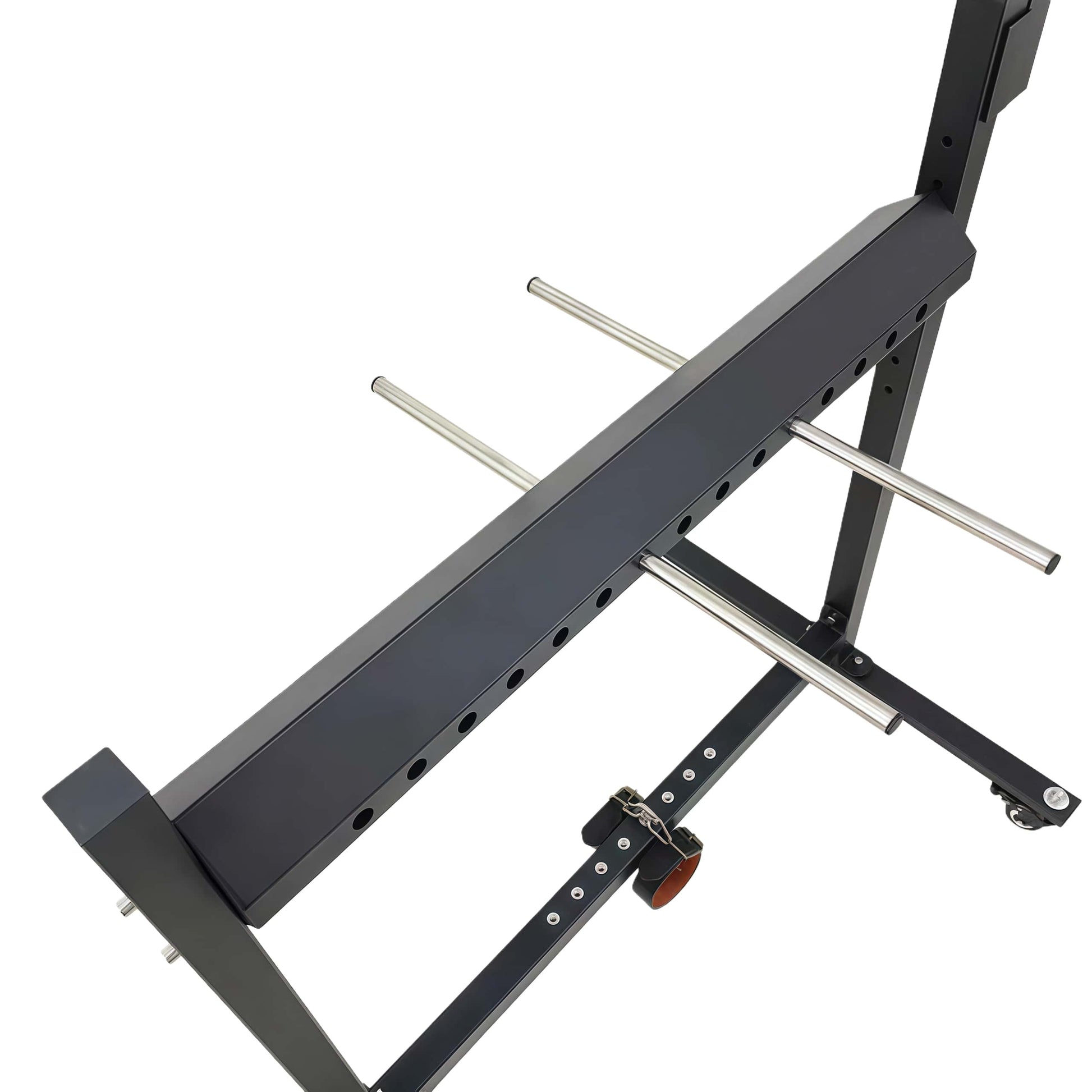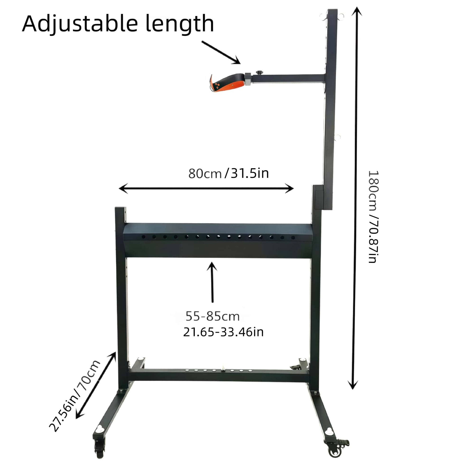 Feito de madeira de olmo e metal, possui vários pontos fixos para alcançar restrição em múltiplas posições.